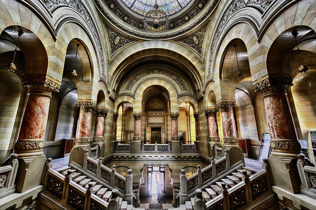 In fotografia de azi este holul Palatului Administrativ din Craiova in care isi are sediul Consiliul Judetean Dolj.