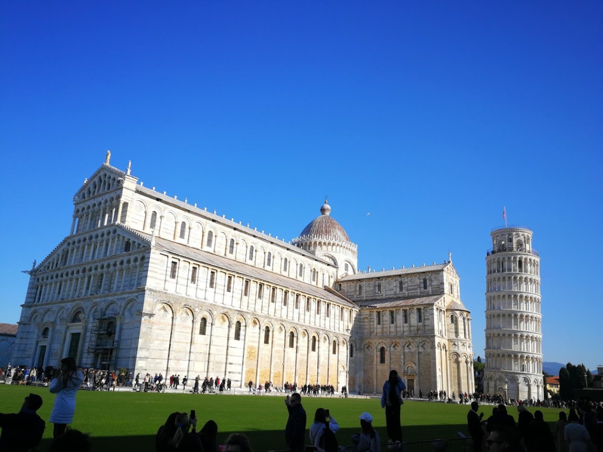 Turiști încercând să sprijine turnul